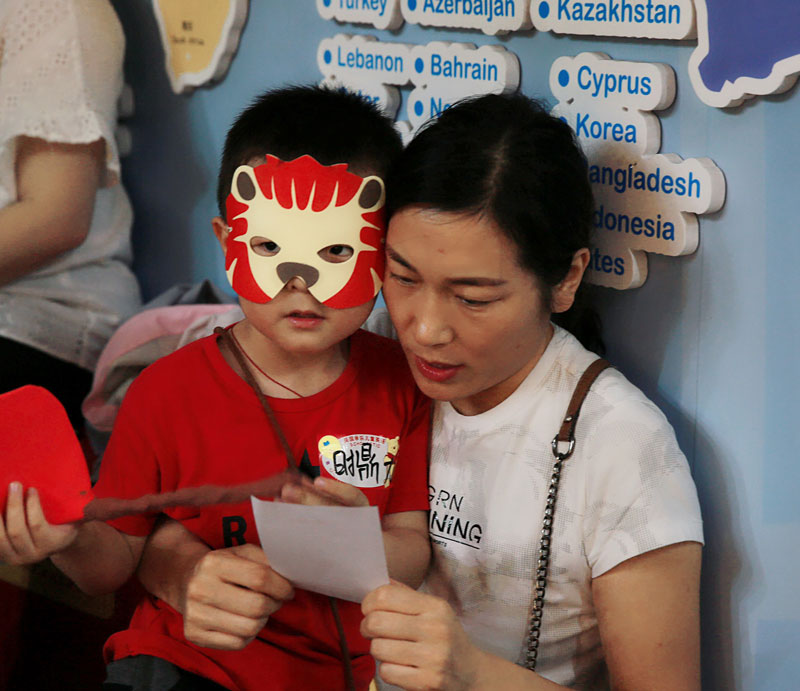 在生日会现场,爸爸妈妈们也扮演一回小动物,