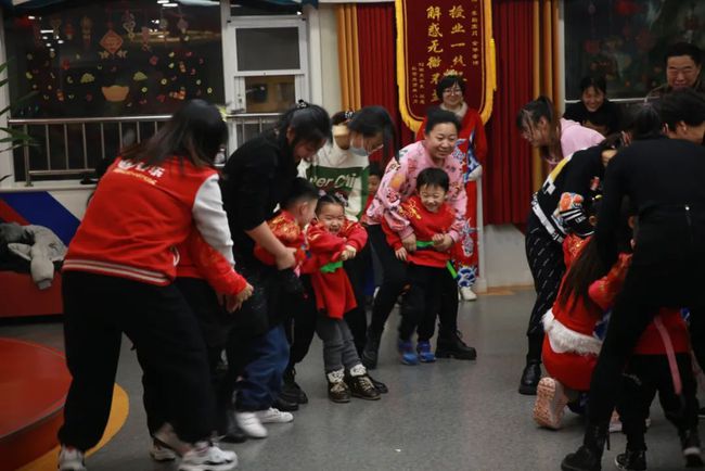 老师们穿上过年的喜庆衣服,